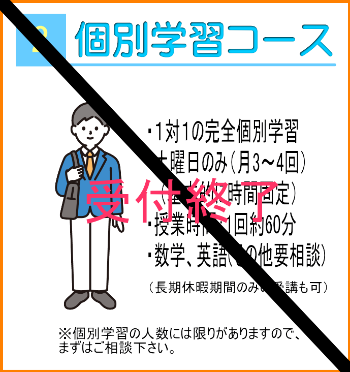 ②個別学習コース(受付中止中):土曜日のみ
